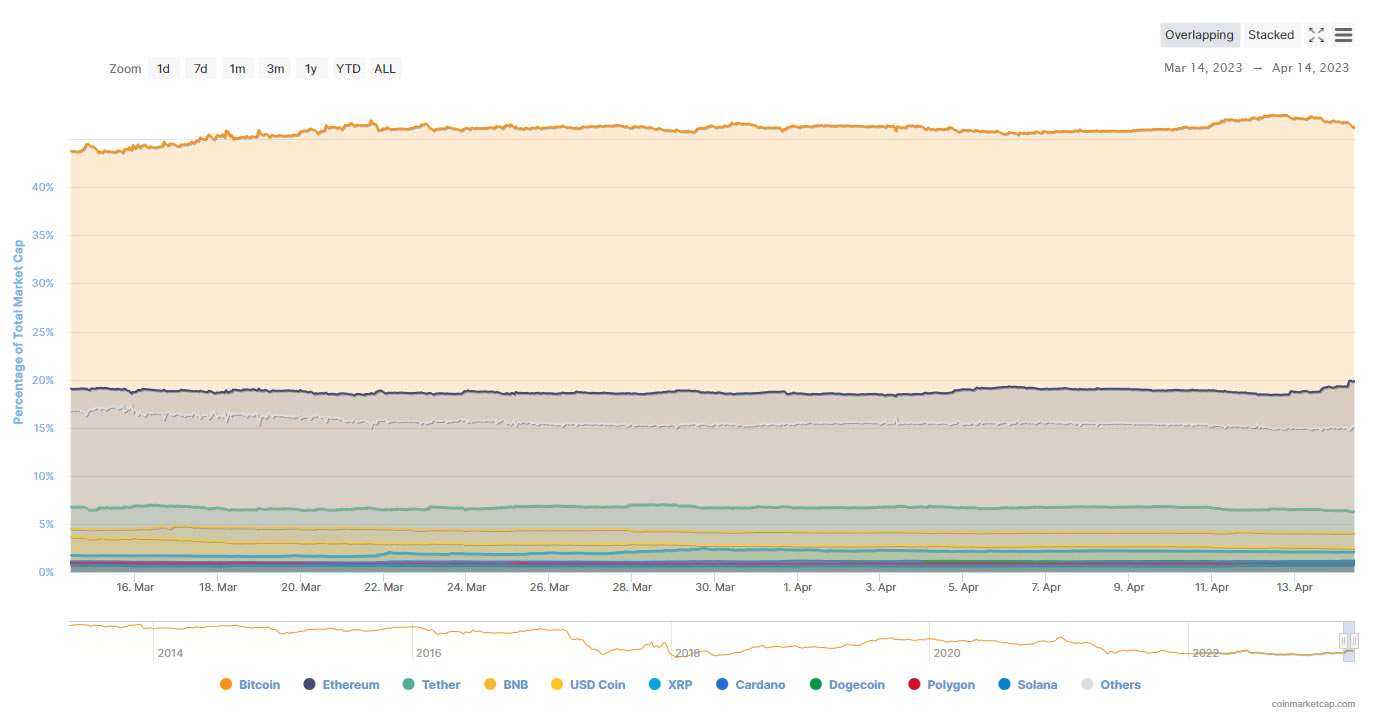 Индекс рассчитывается путём соотношения капитализации актива с общей стоимостью всех криптовалют, которая сейчас составляет $1,33 трлн.